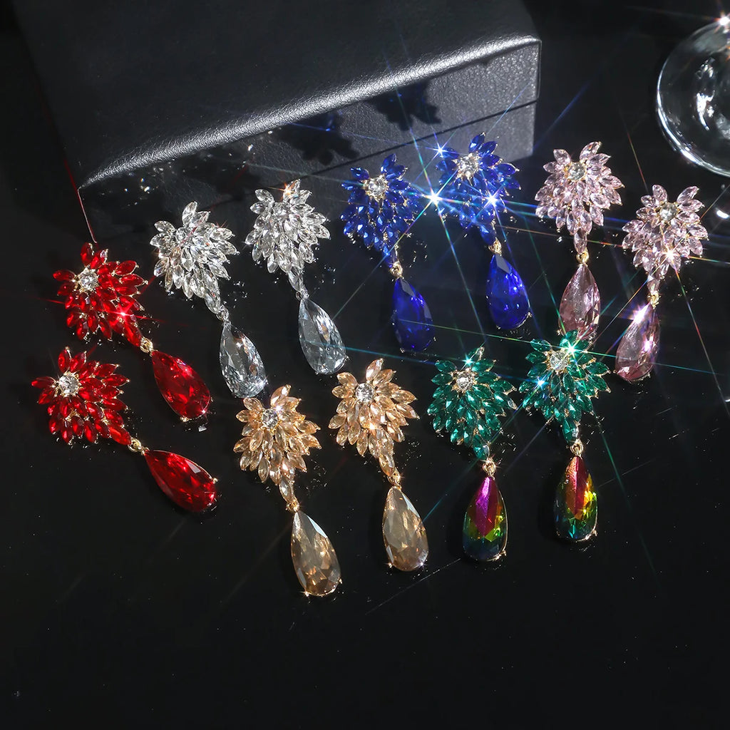 Design sense of personality exquisite colorful full of diamonds drop earrings fashion light luxury temperament match earrings